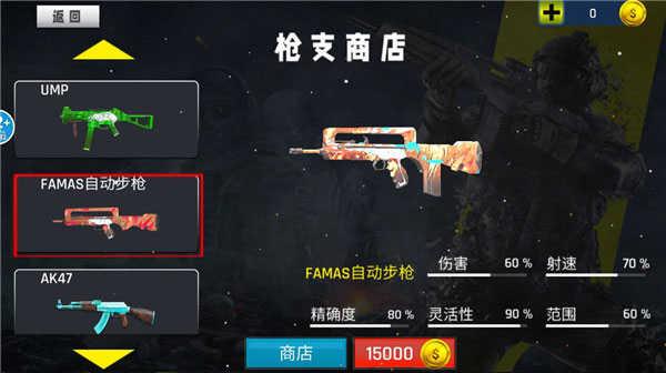 4、在进入游戏前先选择一把枪支,当然如果你不差钱,可以挑最贵的,越贵枪支战斗力越强