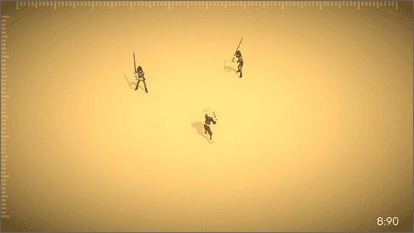 当你的行动(冲到敌人身旁攻击)结束后,敌人也会根据距离与朝向有相应的反应(包括跑动和攻击),再轮到你行动。如此循环。多试几关就能发现要义在于拉扯敌人的空间。因为敌人离你远的时候只能徒劳地跑过来,而你一闪身又去了他身后杀另一个人...只有当敌人和你相距够近的时候,才会一刀把你干掉。