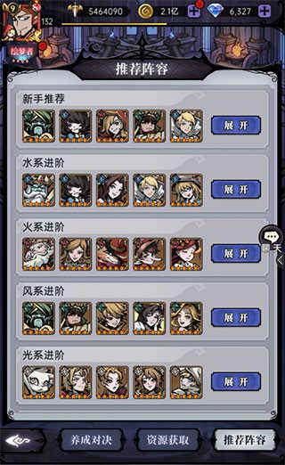 1、冒险者们在城堡里面召唤伙伴,可以在界面右上角的推荐栏里面查看推荐阵容,根据自身目前拥有的伙伴或想走的阵容路线进行选择。