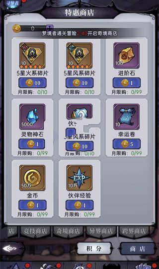 1、【必买】火柴商行里的神秘商店每天都有好几次免费刷新,看到可用金币购买的进阶石、幸运卷、伙伴经验就买它买它买它!6折钻石的高能晶石也是很划算的哦!
