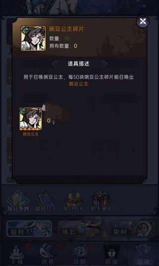 2、刚刚小编给玩家们讲述了豌豆公主碎片的获取方式,接下来给玩家们简单讲解一下豌豆公主碎片怎么使用,豌豆公主碎片用于召唤豌豆公主,每50块豌豆公主碎片能召唤出豌豆公主,可合成5星级的豌豆公主