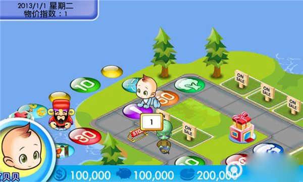藉由掷骰子来决定行进的步数,可藉由买土地、盖房子及收取租金,来广展自己的势力。