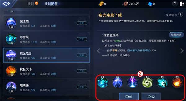 ①点击想要的技能会使用技能,使用后显示每个技能的冷却时间。