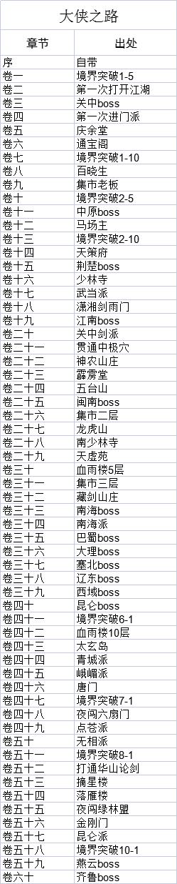 大侠之路总共60卷,每10卷可以获得一本通用武学,该武学不会占用武学格子,获得的武学会自动学会,在武学栏标签可以查看相应武