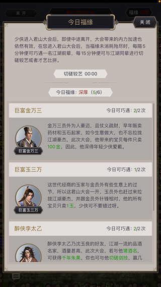 ③、奇遇NPC触发有次数限制,使用八卦符增加次数后(随机),如果有多余的次数可以用于切磋。