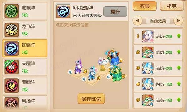 但是因为三大防御型阵法(物抗地阵、法抗蛇阵、封抗雷阵)之一的蛇阵的改动,却是让双法队伍不得不放弃了这一防御型阵法,转而选择进攻性更强,但抗性较差的风阵和虎阵,让法系队伍目前的PVE征战中颇有一种激情对冲的意味,不是你死,就是我亡。