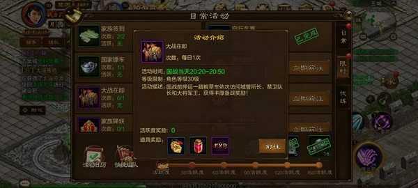 国战开始前40分钟,可参与押运粮草的“大战在即”活动。