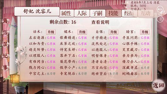 玩家可以将家庭背景选的高一些,然后你进去的位份就会相对高一些,目前一开始进去玩到最高的位份是贵人