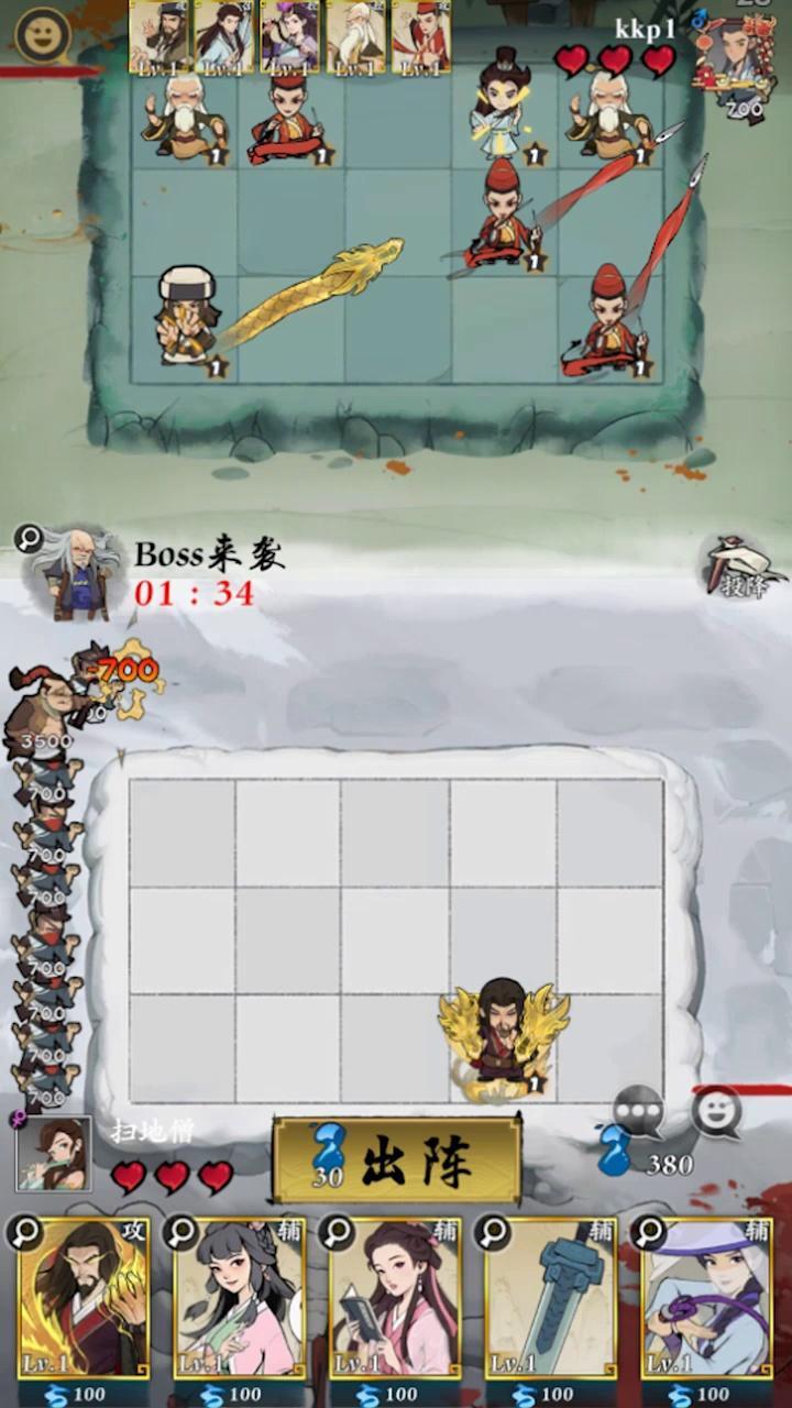 2、自由战斗,巧妙组合塔防战斗,抽取武侠角色,横扫武林世界;