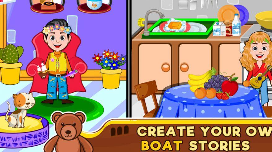 1、在假装的海岛游船冒险中探索都市仙境,享受岛屿城镇、海盗船并与船员一起玩耍。