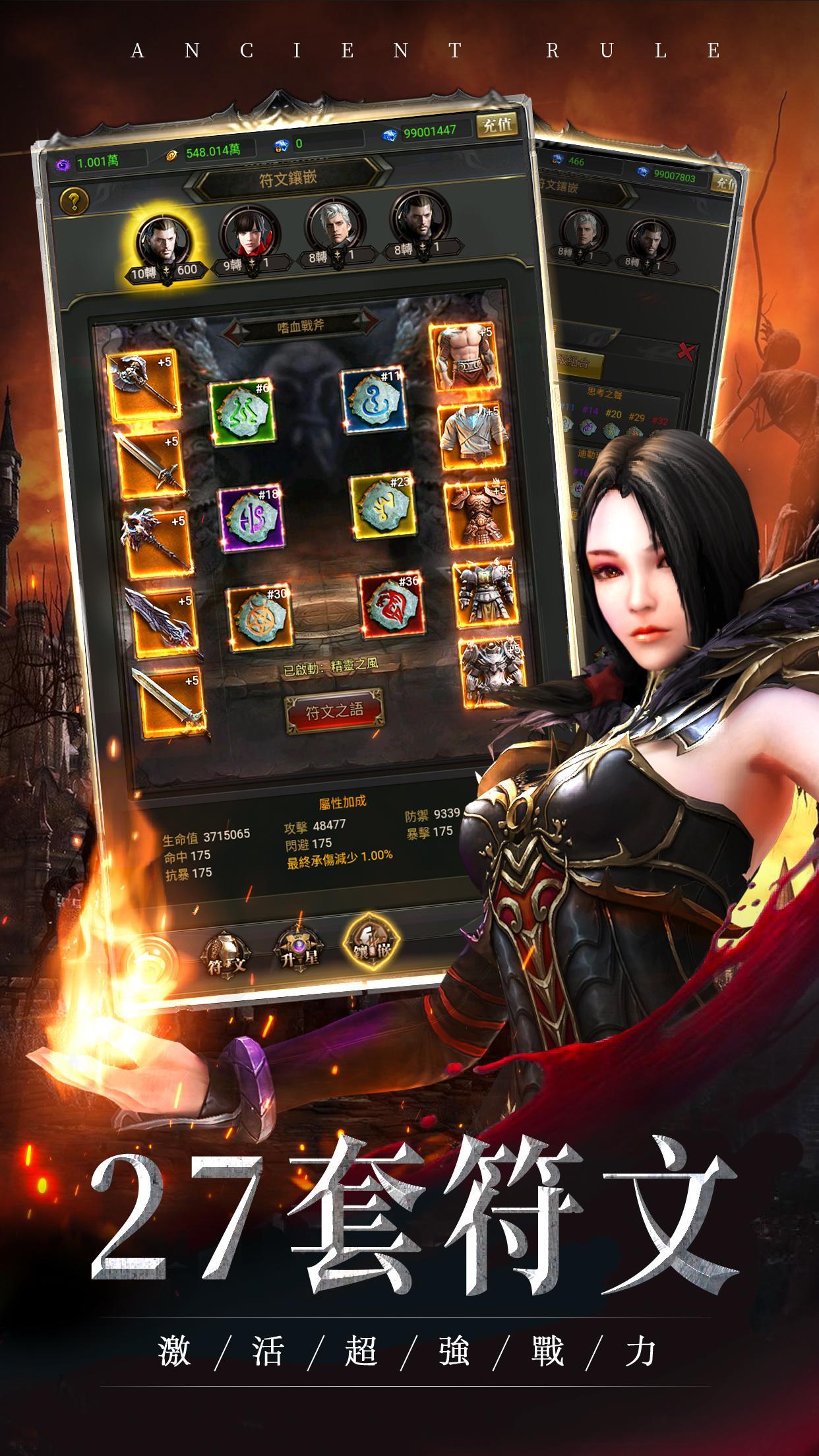 3、多样养成,五大神器,赢得最强战力,27套符文装,极具辨识度的套装外观!