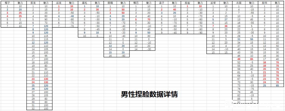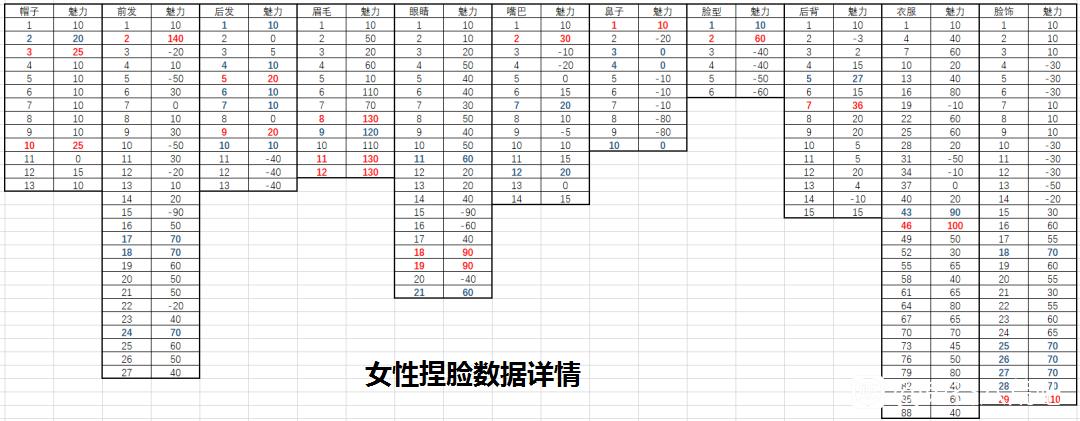 鬼谷八荒这款游戏中捏脸的各项数据会影响魅力,男女各部位捏脸数据的魅力值各不一样,请仔细查看正确的数值再进行手机,具体捏脸各部件魅力详细数据请点击大图。