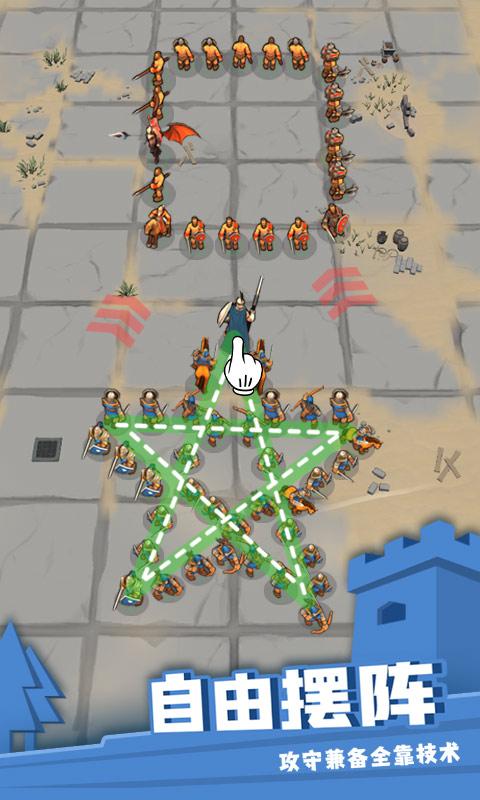 1. 本游戏操作简便,玩家仅需进行单指滑动动作以纯手绘方式迅速排兵布阵。在不超过一秒的时间内,玩家能轻松调整军队配置,而在三秒之内,即能发起一波对敌攻击。