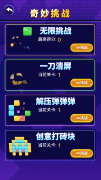 3、专业砖,精彩不停,多种类型精彩模式解锁让你完成,缤纷关卡选择冒险一切。