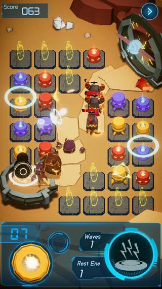滑动一个方向,对同类型且同等级的机械升级,如果要移动的化,可以让高级的机械向十字方向的低级机械移动,低级机械也可以向移动到高级机械移动,但最终都是低级机械被回收,但要注意,同等级的不同机械是相互排斥的。而且每次移动都会消耗一个补给机械。
