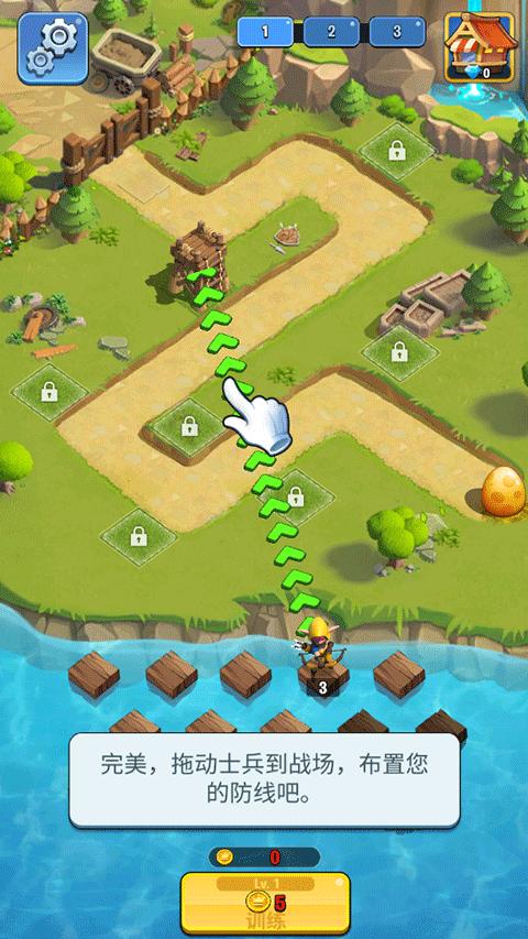 3、然后将合成后的士兵拖动至战场,布置你的防线