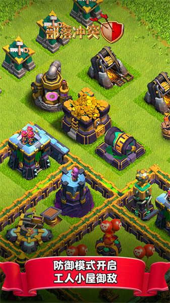 1、玩家需要保护自己的部落,攻击敌人,掠夺资源建造建筑物,提升自己的战斗力;