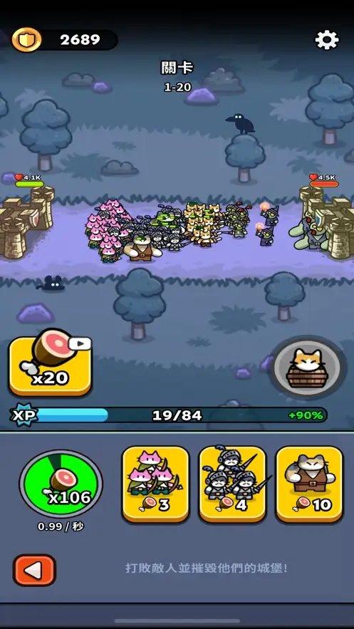 1、你可以收集和强化不同职业的猫咪英雄,让战斗策略变得更加多样化;