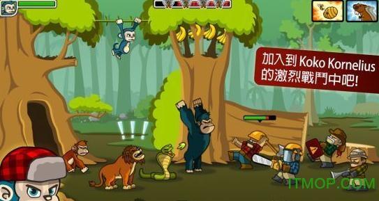 之后,让主角KoKo配合两只先出的动物打头阵阻击第一波敌人。要注意的是不要让主角KoKo死了,一旦血量低于安全水平,要让它及时后撤。