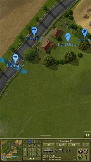 4、由图可见,这种情况非常危险。我方的余回部队被发现,但由于处于丛林复杂环境没有被交叉火力压制,我决定让他强行进攻,并派遣m5a1进行支援,地图最左端的机械步兵则进行大于回穿插,机械步兵团的位置被遮蔽物环绕,不用担心遭到火力打击,