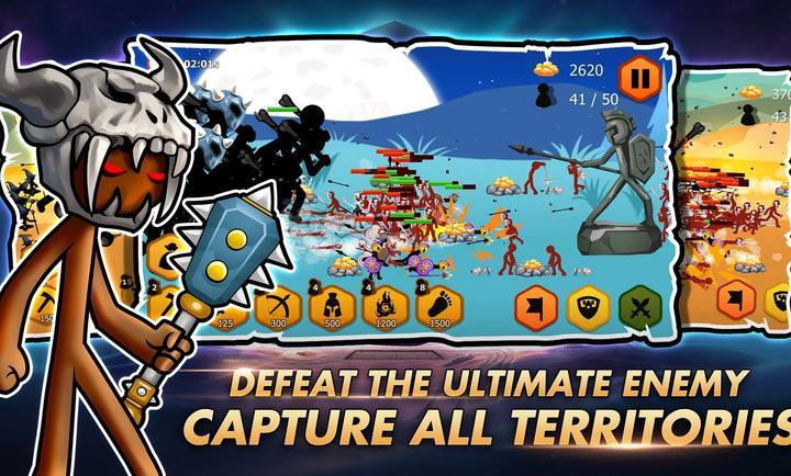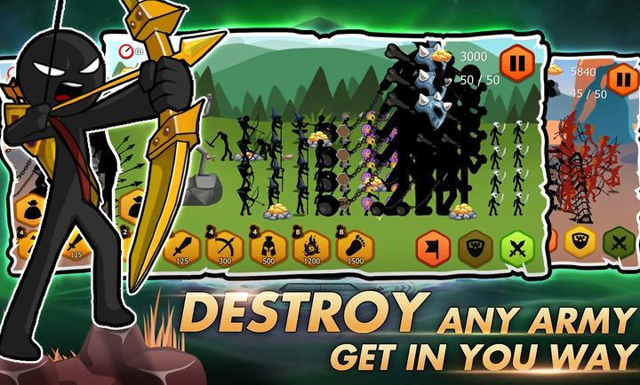 - 提高武装部队的战斗能力,然后使用您的策略在战争中击败敌方火柴人。