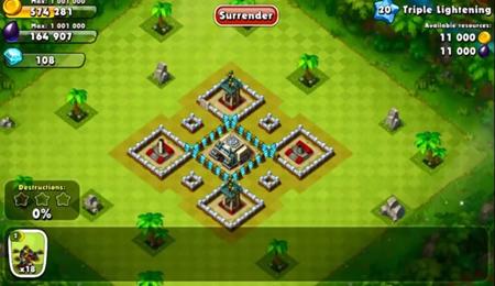 3、使用大炮、箭塔、迫击炮、隐形炸弹、隐形泉水、城墙等防御设施来保卫村庄。