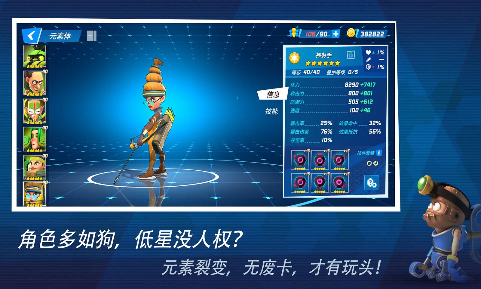 3、而想要获取某固定元素的“插件”或道具,只能刷相应元素的副本关卡去获得,利用这几条特性,玩家可以在主界面的图鉴中查询这些BOSS的机制从而编出更加合理的队伍,轻松通关。