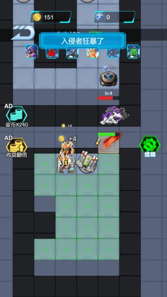 4、合理的布局机甲,利用各种各样的优势来增加游戏的防御能力。