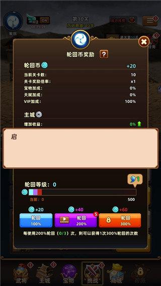 打不过的时候可以尝试给武将升级,多打几关轮回币给的多点