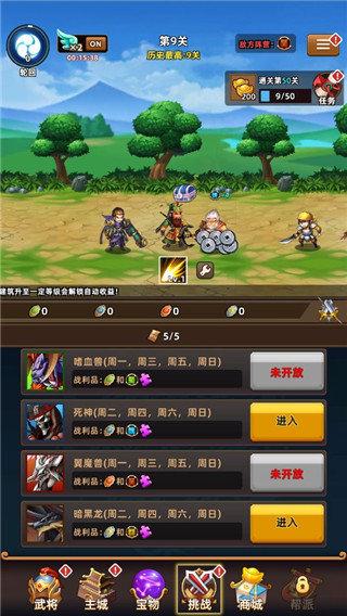 前期资源可以全部堆在一个武将身上,从1000关开始,BOSS会限制阵容,只有指定阵容才能造成伤害,可以用广告重生将武将的资源转移给对应阵容的武将