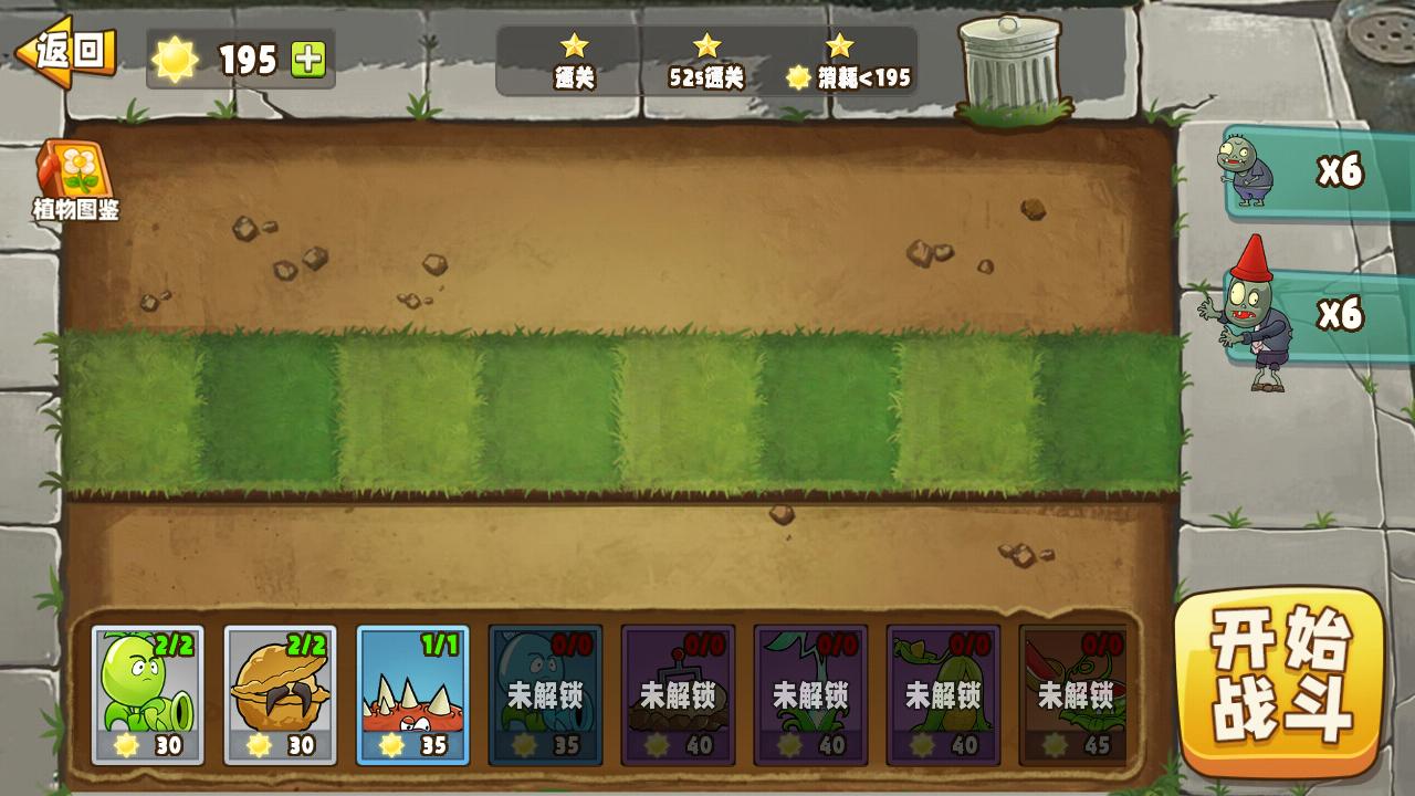根据地图的特点和游戏中的主要敌人选择植物,然后达到最佳防御效果;