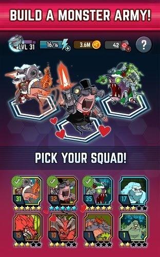 粉碎怪物:城市破坏 SMASH Monsters是一款COC类游戏,游戏中,玩家需要扮演一位邪恶的指挥官,任务是毫无理由地把其他玩家和邪恶NPC的城市摧毁掉。游戏的玩法大致可分为两部分,核心的PVP和抽扭蛋。PVP系统可以再分拆为两个部分,一个是进攻:带着怪物出去抢钱;另一个是防守:种田盖大炮防止被别人抢。和COC相比,本作的战斗版图被简化为3×3的标准九格,一个格子塞一个建筑,双方按回合制行动,把建筑全拆完算胜利,被防御建筑全击杀算失败。怪物和建筑有冰、火、毒三种属性——并且如你所想有简单的属性相克。怪物和建筑也有各自的技能,建筑会自动攻击,怪物的技能需要在自己回合手动释放。