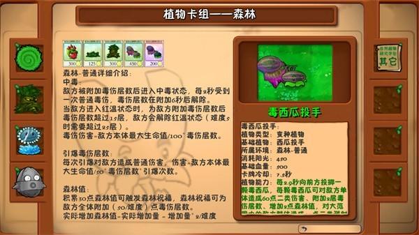 1、森林卡组的特殊效果如图所示,能够在特定环境下影响植物属性。