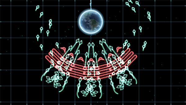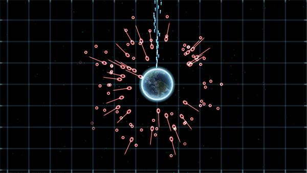 敌人进攻。玩家需要保护蓝色行星的核心,同时消灭尽可能多的敌人以获取高分。