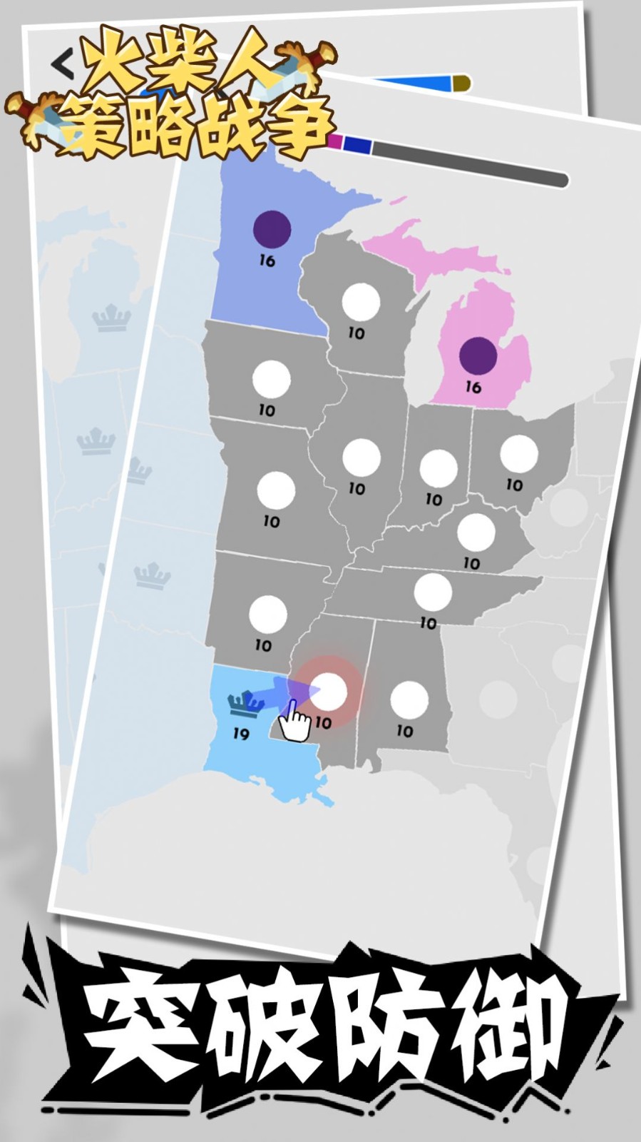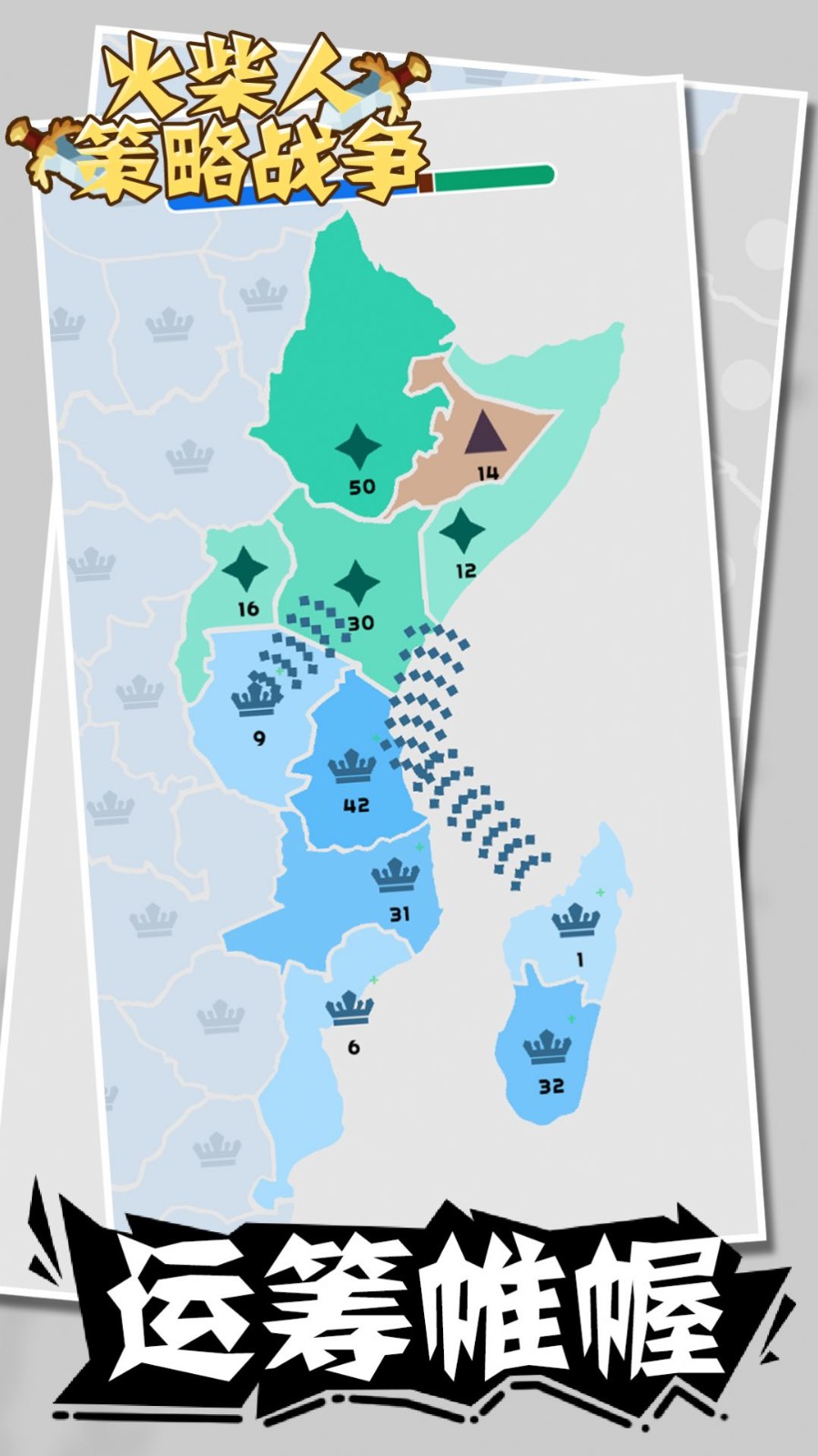1.全新策略竞技对战等你加入,让自己的火柴人军团击败更多对手,获得更多领地。