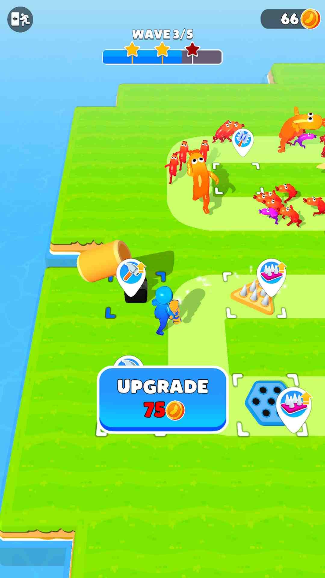 2、对抗试图到达你的基地的入侵者浪潮。 锤子、旋转刀、危险的尖刺。