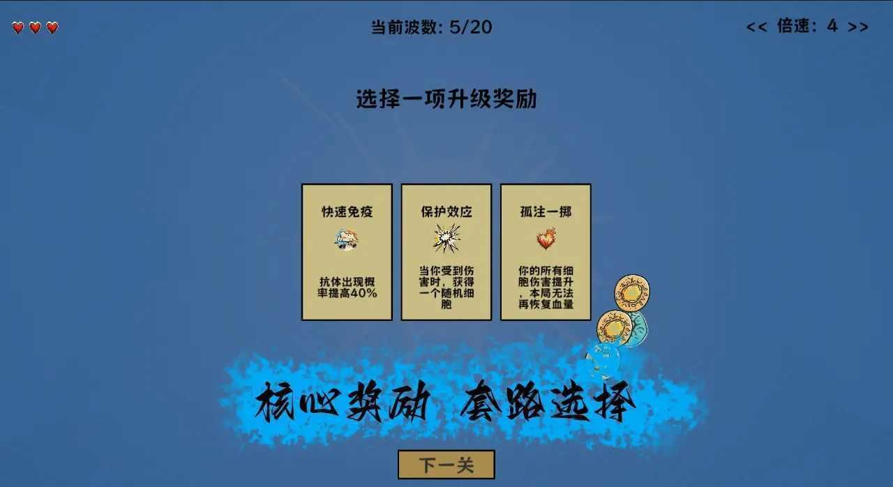 玩家需要根据不同情况合理应对,防止病原体侵入。