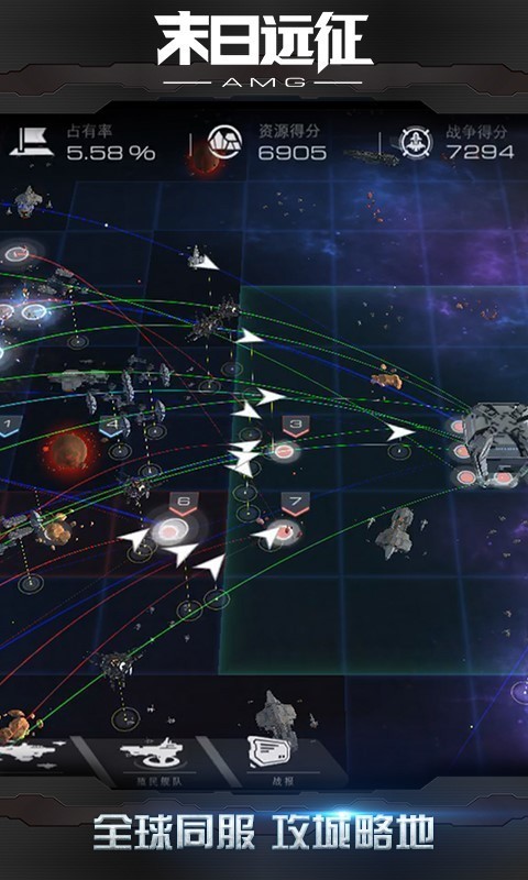 3、全球同服,电竞级快节奏的征服星域玩法,与数十军团一起攻城略地!