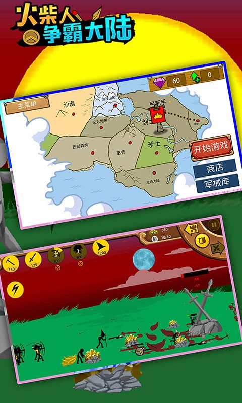 火柴人争霸大陆是一款策略性冒险类游戏,游戏地图场景丰富多样,并且难度可调节,在不断的闯关获得奖励后可以提升队伍等级,打造新兵种不断提高战斗力,这样更利于后面的战斗,发挥你聪明的头脑,运用你的策略来排兵布阵,胜利将会属于你。