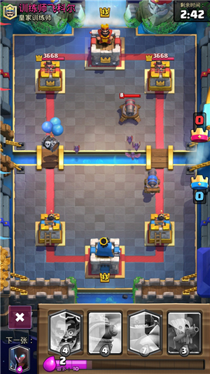 部队卡可以召唤出部队来进行攻击,不同的部队攻击对象和手段不同,有的是造成群体伤害,有的是只攻击建筑;部队卡只能在己方阵地使用。