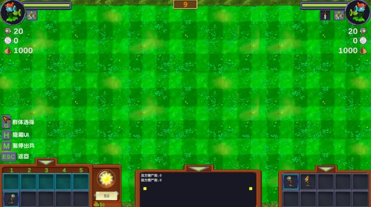 3、游戏开始后,随着顶部倒计时的结束,系统将自动为敌我双方分配资源(人数,资金),你可以根据我方当前的资源选择适合的僵尸出动,你也可以通过暂停或恢复我方僵尸的出动,每出动一位僵尸都将从当前资金(有硬币标记的那一栏)扣除当前僵尸所需的钱,当前资金不足或僵尸人头数为0时将无法出动僵尸,资源根据不同关卡而定都有上限。