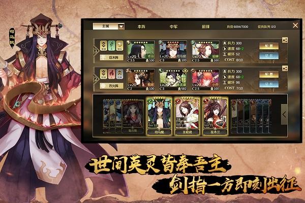 1、每一位武将都有着自己的属性,玩家可以选择战斗出场的顺序和搭配。