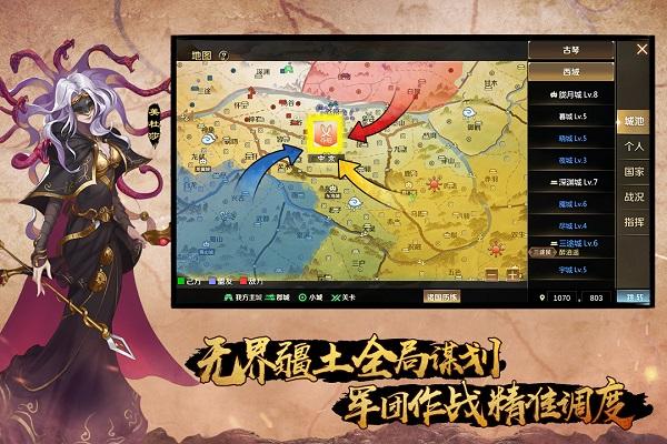 4、自由的探索丰富的三国地图,用你的扎实策略,用武力来解决一切收复成功。