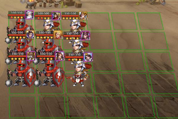 该阵型不仅在攻城战里适用,在单挑战斗,以及竞技场战斗中也很实用:能在一定程度上打赢比你战力强的正常阵容对手。