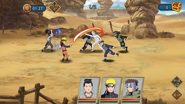 传说忍者任你驱遣操作,木叶十二小强、指导上忍、传说三忍、砂之国忍者……告别单一角色体验,任意切换,肆意挥洒!