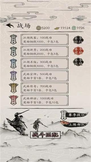 如果喜欢挑战的话则可以直接转战pvp依靠每把胜利获得的100铜钱来以战养战。可以先去客栈抽卡看看抽到了什么角色,这里给个小建议抽卡的时候留2000铜钱解锁阵营,根据抽到的卡牌看看哪个阵营比较好成型。(详情请期待后续各阵营主要卡组介绍),如果没办法组出心仪的卡组也没有关系,可以使用雷奉宣镜像卡组进行pvp学习对手卡组的操作技巧。
