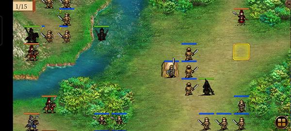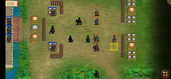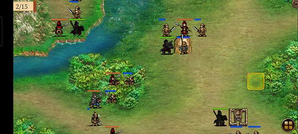 第一回合,三人移动到下图位置,张飞攻击一下,关羽打掉弓兵。