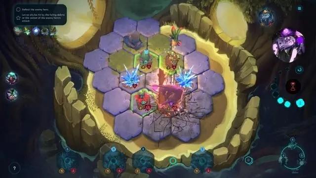 1、本作的玩法是在六边形小地图中,通过消耗能量进行打出卡牌召唤角色/造成伤害/净化地板……等等行为。玩家开局会被分配数张卡牌,可以选择重抽。召唤的棋子第一回合不能攻击。此外,每个棋子在进战阶前也可以移动,战阶时可以对正面的敌人发动攻击,回合结束后如果被正面的敌人攻击也可以触发反击。