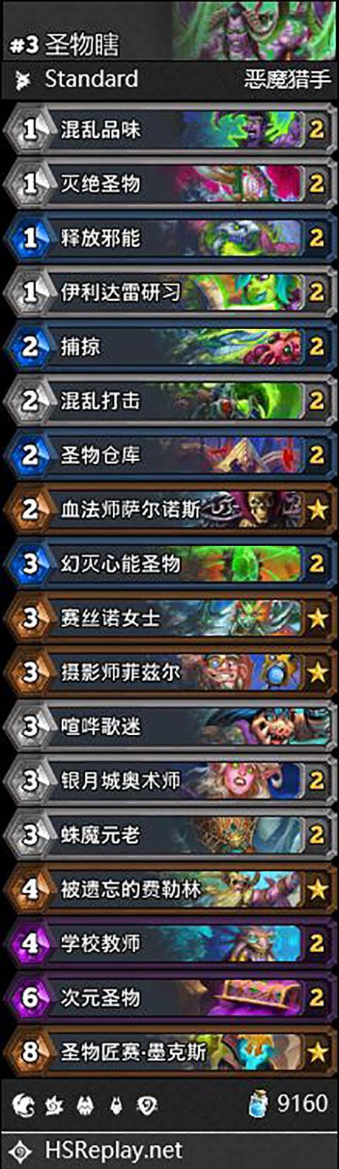 恶魔猎手在炉石传说这款游戏中一直是比较受欢迎的角色,而就在最近,有网友晒出了恶魔猎手最新的牌组,这套牌组直接让恶魔猎手原地起飞,这套牌组就是小编今天给大家推荐的圣物瞎了。