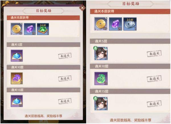 同时不同阵营的塔楼获得的奖励也不相同,可以看到吴之试炼的高级奖励主要为【星岩沙】和【三才玉】,但位于中心的【斩将】塔楼奖励则是【角色卡】与【魂玉】。